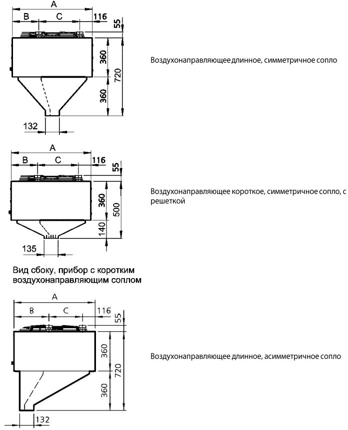 - эффективная длина струи воздушного потока от 5 метров (исп 1) до 7 метров (исп 2).