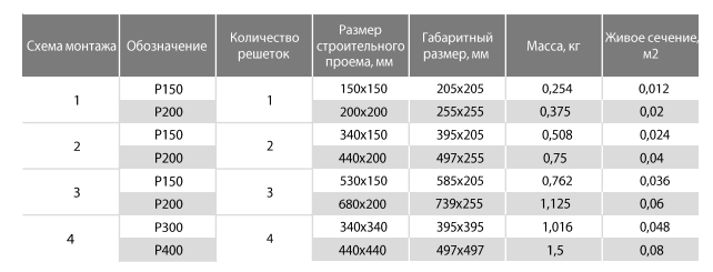 - Решетки P150 и решетки P200 возможно компоновать по распространённым схемам монтажа. Установка решеток по несколько штук в соответствии со схемами, производится на объекте.