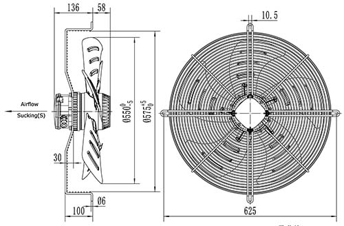 Стандартное направление вращения лопастей вентиляторов YWF — против часовой стрелки, если смотреть на ротор — всасывание, направление вращения лопастей по часовой стрелке — нагнетание.