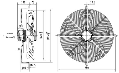 Вентилятор осевой YWF4D-630S-137/70-G вытяжной на сетке 11600 м3/час