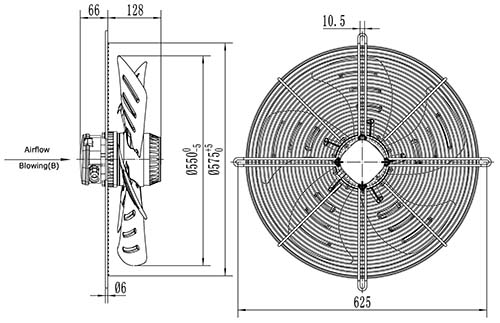 Вентилятор осевой YWF4E-550B-137/50-G нагнетающий на плоской сетке 8200 м3/час