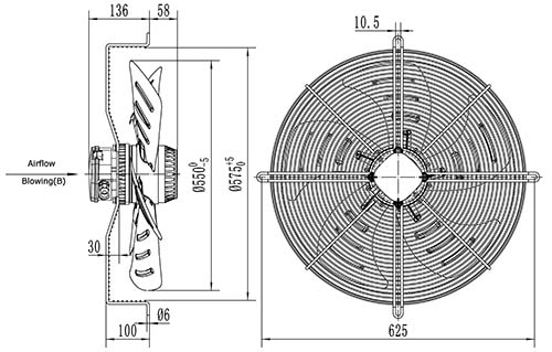 Вентилятор осевой YWF4E-550B-137/50-G нагнетающий на сетке 8200 м3/час