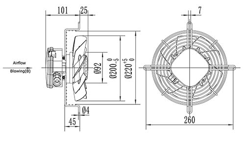 Вентилятор осевой YWF2E-200B-92/15-G нагнетающий на сетке 730 m³ м3/час