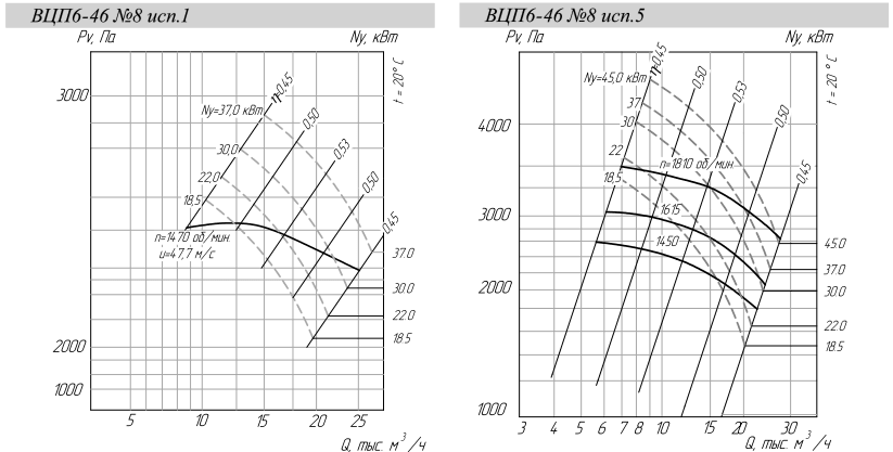 Среднего давления. Одностороннего всасывания. Корпус спиральный поворотный. Направление вращения — левое и правое.  Аналогичен серии ВЦП 6-46, ВР 100-45