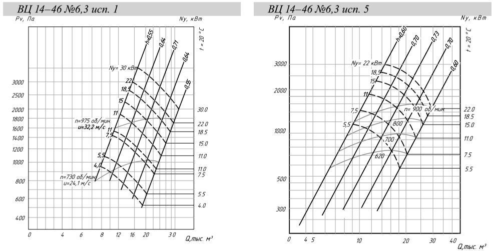 Количество лопаток:  Количество лопаток: ВЦ 14-46, ВР 280-46 –32; ВР 300-45 – 34.  Аэродинамические характеристики данных  маркировок идентичны.