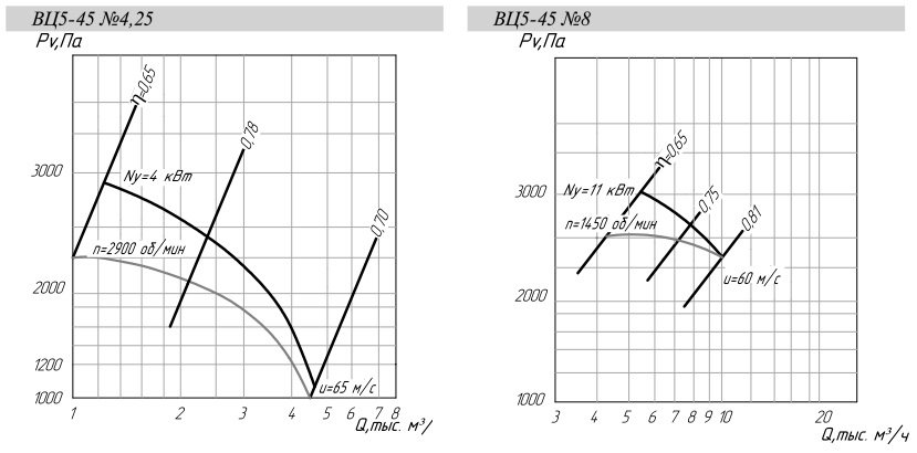 | ВЦ 5-45-8,0 | ВА132M4 | 11,0 | 1500 | 6400-11900 | 2640-2270 | 262 | ВР-203 | 6 | |