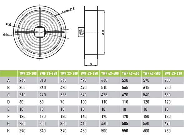Вентиляторы серии YWF имеют электродвигатели с внешним ротором. Вентиляторы оснащены крыльчаткой с серповидными лопастями, которая имеет динамическую балансировку в двух плоскостях для достижения минимального уровня шума.